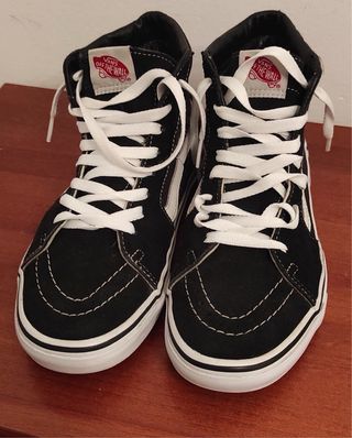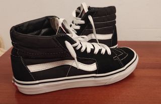 Zapatillas altas Vans Sk8 Hi. - Diseño clásico en negro y blanco. - Cordones blancos. - Suela de goma blanca.