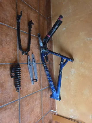 Piezas de despiece para cuadro Kona Stinky. Incluye amortiguador y horquillas. - Cuadro Kona Stinky azul. - Amortiguador Marzocchi roco R incluido sin la tapa de atrás y con muelle original - Basculante de Atrás (Desmontado ATENTOS - Se vende Básicamente lo q se ve en la imagen , No tengo los tornillos originales , y tampoco los tengo a mi Disposición....El cuadro funcionaba perfectamente (SIN FISURAS) Y RODAMIENTOS A CAMBIAR de ahi su precio PRECIO NO NEGOCIABLE Y ENVIOS DISPONIBLE
