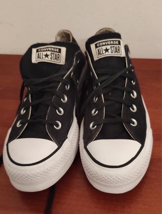 Converse talla 39.5 material lona color negro suela alta de plataforma en buen estado