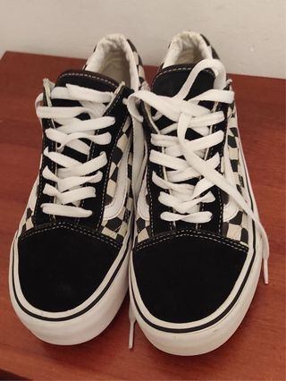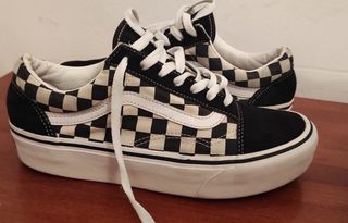 Zapatillas Vans Old Skool con plataforma.la piel del talon un poco cuarteada por dentro no influye en su estetica por fuera - Diseño a cuadros en blanco y negro. - Cordones blancos. - Suela de goma blanca.