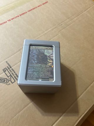 Deckbox para cartas Magic: The Gathering con cierre de rail superior imantado y ventana para toploader. - Material: Plástico. - Capacidad: 100 cartas enfundadas. - Cierre seguro de rail. - Incluye toploader. - Color a elegir. (Cartas y fundas no incluidas).