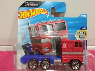 Camión Hotwheels de Optimus Prime de la saga Transformers. - Diseño inspirado en el personaje. - Ruedas plateadas. - Detalles en rojo y azul.