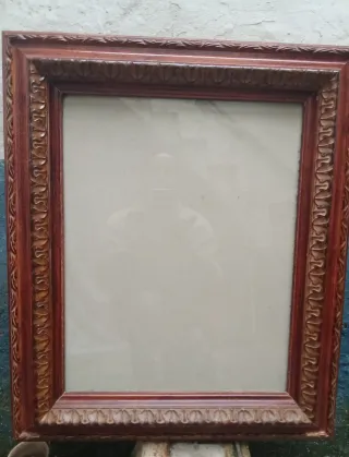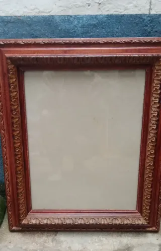 Marco de madera con un diseño tallado y acabado en tono rojizo. - Material: Madera. - Diseño: Tallado. - Color: Tono rojizo.