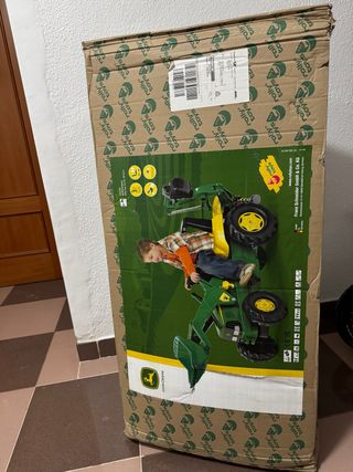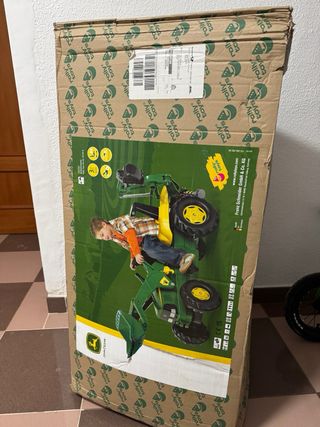 Tractor de juguete John Deere con pala delantera y trasera. Nuevo sin abrir la caja. Regalo repetido. - Pala delantera. - Pala trasera. - Diseño John Deere.