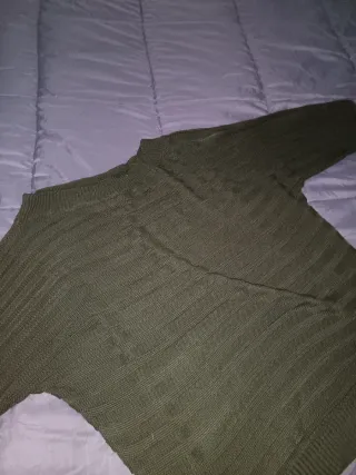 Suéter negro con un diseño tejido y moderno. - Tejido acanalado en diagonal. - Cuello redondo.