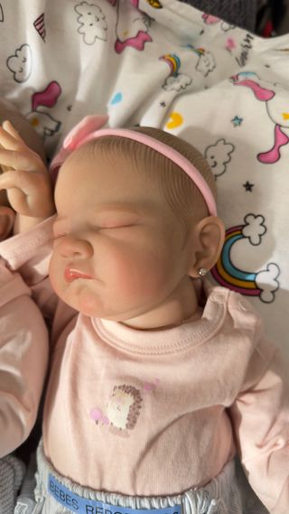Precioso bebé reborn con detalles realistas. - Incluye diadema rosa con lazo. - Ropita de bebé con estampado de erizo.