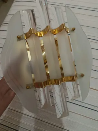 Elegante aplique de pared con un diseño moderno y sofisticado. - Combinación de cristal transparente y detalles dorados. - Estructura metálica de alta calidad.