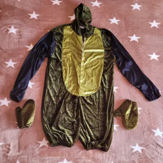 Divertido disfraz de tortuga para adulto. Incluye el mono, manoplas y caparazon ajustable. - Mono con velcro frontal. - Capucha integrada. - Guantes a juego. - Caparazón ajustable.