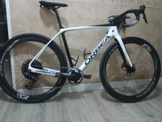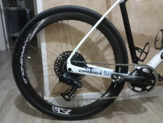 Bicicleta gravel Orbea Terra montada SRAM Force y Ceramic Speed bielas y roldanas y desviador trasero xx1. Cuadro blanco y negro tope de gama y garantía de por vida - Ruedas Campagnolo Shamal c21 - Manillar visión metron 6d - Sillín fizik tope de gama carbono y 3d