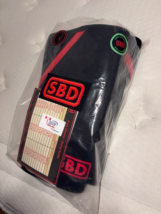 Rodilleras SBD en talla L, diseñadas para ofrecer soporte y compresión. - Color negro con detalles en rojo. - Aprobadas por la IPF (International Powerlifting Federation). - Incluye guía de tallas para un ajuste óptimo.