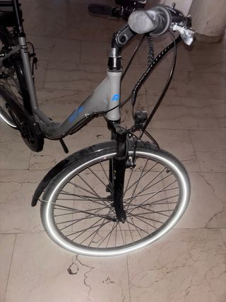 Bicicleta eléctrica a estrenar, lista para rodar. - Color gris con detalles azule (blanca y negra) - Rueda delantera con reflectante.