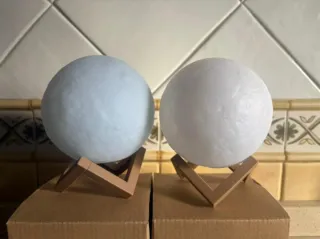 Lamparas decorativas en forma de luna. Embalaje original. Funcionan con pila de botón.