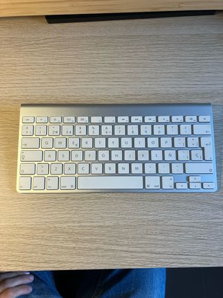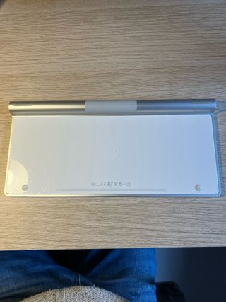 Teclado Apple en buen estado, ideal para tu espacio de trabajo. TIENE UNA PEQUEÑA FISURA SIN IMPORTANCIA, lo dejo en una foto, por lo demás funciona perfectamente. - Diseño elegante en plata y blanco. - Funciona con pilas AA. INCLUIDAS