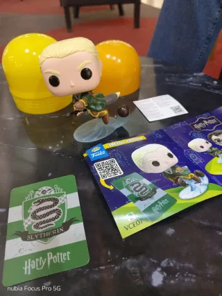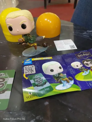 Figura Funko Pop de Harry Potter, edición especial de Slytherin. - De Kinder gran sorpresa. - Figura de Draco Malfoy volando en escoba. - Incluye carta de Slytherin. - Base transparente para exhibición.