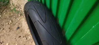 Neumático de motocicleta con fecha de fabricación 3419. Han rodado menos de 100km, se sustituyen porque se equivocaron en la numeración y la moto no pasa itv
