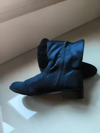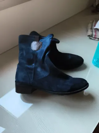 Botines de ante en color azul. - Material exterior de ante. - Detalle de logo en la caña. - Tacón bajo.