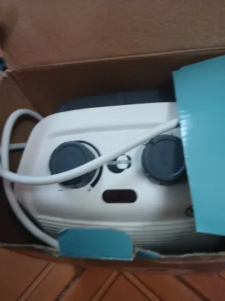 Plancha de mano vertical para alisar ropa. - Color blanco y detalles dorados. - Incluye manual de instrucciones. - Viene con una bolsa de plástico. - Acepto ofertas.