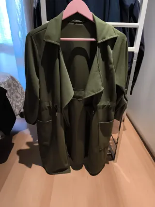 Blazer de corte moderno en color verde. Ideal para añadir un toque elegante a cualquier atuendo. - Diseño abierto. - Cintura ajustable con cordón. - Bolsillos frontales.