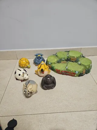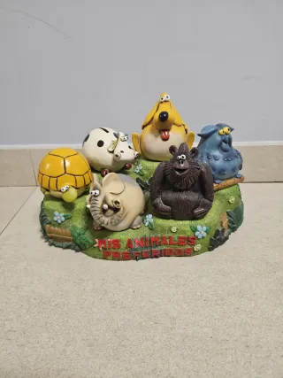 Original hucha decorativa con varios animales. - Diseño divertido con animales como un perro, un mono, un elefante, una vaca, un búho y una tortuga. - Base con la inscripción Mis animales preferidos. - Ideal para decorar una habitación infantil o como regalo. -son como de cerámica. -la base ya pesa 3kg.