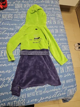 Bata con capucha para niño, inspirada en Hulk. -talla 5/6 años (110/116cm) - Diseño con capucha. - Estampado de The Incredible Hulk en la espalda. - Cinturón para ajustar.