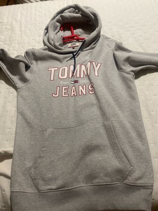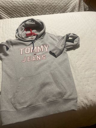 Sudadera con capucha de la marca Tommy Jeans. - Color gris jaspeado. - Logo de la marca en el pecho. - Bolsillo canguro delantero. - Cordones en la capucha.