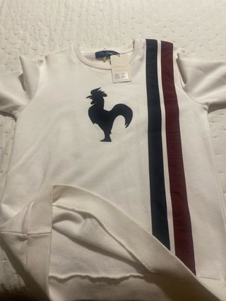 Sudadera blanca con diseño deportivo de Le Coq Sportif. - Detalle de tres bandas verticales en el lateral. - Estampado de gallo en el frontal.