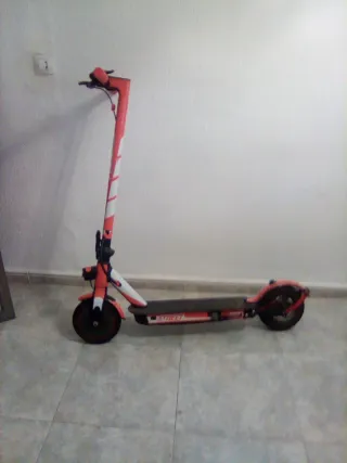 Patinete eléctrico de la marca STREET, ideal para desplazamientos urbanos. Su diseño es moderno y llamativo. - Color principal rojo y blanco. - Ruedas delanteras y traseras. - Plataforma para apoyar los pies.