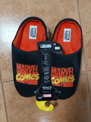 Zapatillas de estar por casa con el logo de Marvel Comics.Talla 42/43 - Parte superior y forro de poliéster reciclado. - Suela de espuma viscoelástica. - Lavables a máquina.