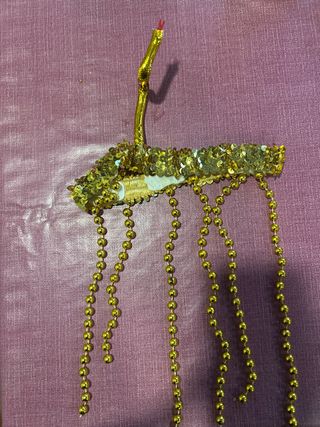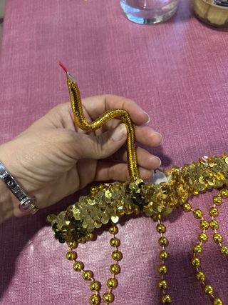 Diadema inspirada en Cleopatra, con un diseño llamativo y elegante. - Adornada con lentejuelas doradas. - Cuentas doradas colgantes. - Detalle superior con forma de serpiente.
