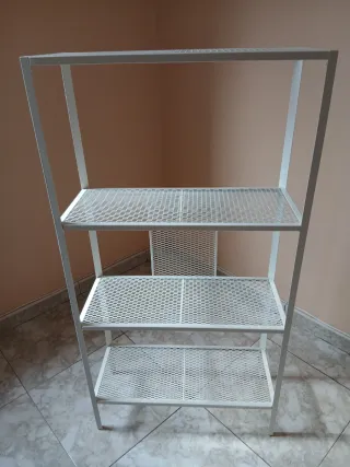 Estantería de metal de Ikea con un diseño moderno y funcional. Ideal para organizar tus espacios. - Estructura de metal resistente. - Acabado en color blanco. - Múltiples baldas para almacenamiento.