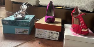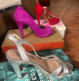 Elegantes zapatos de tacón alto, ideales para eventos especiales como bodas o fiestas. Se encuentran en excelente estado, prácticamente como nuevos. - Diseño abierto en la punta. - Tacón de aguja. - Tira de tobillo con hebilla.