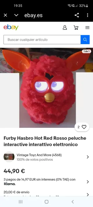 Peluche interactivo Furby de color rojo. - Ojos luminosos. - Orejas rojas. - Pico amarillo.