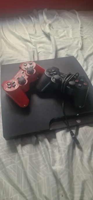 Consola PlayStation 3 en color negro, de 500GB en buen estado y funcional. - Incluye consola. - Cuatro mandos, los de la foto y otros dos negros - HDMI y Cable de corriente - Pack de juegos de ps3, con clásicos como el god of war o Black ops