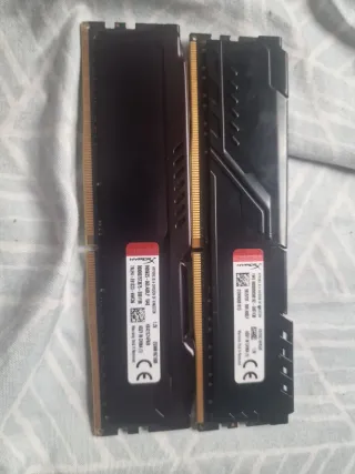 Dos módulos de memoria RAM HyperX Fury DDR4 de 8GB cada uno, para un total de 16GB. Puedo venderlas por separadas. - Capacidad total: 16GB (2x 8GB). - Tipo de memoria: DDR4. - Marca: HyperX.
