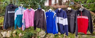 Lote de 23 chaquetas y sudaderas deportivas usadas, de diferentes modelos, marcas y tallas. Incluye marcas como Adidas, Asics, Fila, Puma, Reebok, Sergio Tacchini y Lotto. También ideales para reventa, mercadillos o tiendas de segunda mano. Precio por todas juntas.