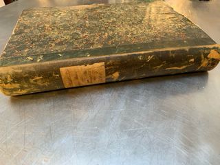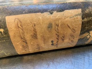 Libro antiguo 1856The Illustrated London News con una etiqueta de papel adherida al lomo, que presenta escritura a mano.1856 - Etiqueta de papel con inscripciones. - Cubierta de papel