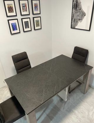 VENDO Mesa de comedor Vettera con un diseño moderno y elegante. Su estructura robusta garantiza durabilidad. - Tablero con acabado efecto piedra. - Patas de madera maciza. - Medidas cm: 160 largo / 80 ancho / 75 altura PRECIO NO NEGOCIABLE - 150€