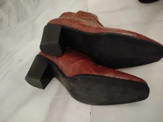 Botines tacón alto flecos piel marrón