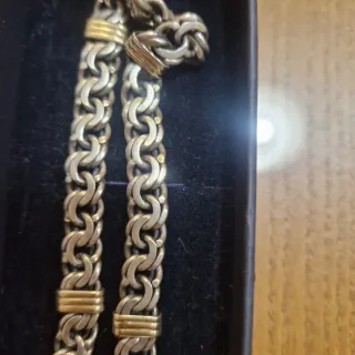 Elegante cadena con un diseño de eslabones entrelazados. - Combinación de tonos dorados y plateados. - Acabado brillante.