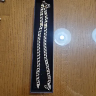 Elegante cadena con un diseño único que combina tonos plateados y dorados. Su estilo la hace versátil para cualquier ocasión. - Diseño de eslabones entrelazados. - Detalles en oro. - Acabado brillante.