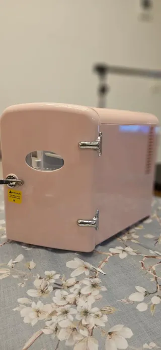 Mini nevera portátil de la marca Citybee. Ideal para mantener tus productos frescos. - Color rosa pastel. - Incluye conexión para 220v y 12v. - prevista de asa para facilitar el transporte. - Ventana ovalada en la puerta. - Sin uso! - Precio actual 45
