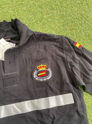 Polo de manga larga de la Unidad Militar de Emergencias (UME). - Diseño con escudo de la UME en el pecho. - Banda reflectante horizontal en el torso. - Bandera de España en la manga. - Cuello tipo polo con botones. - Tengo 4 unidades (15€ 1 unidad).
