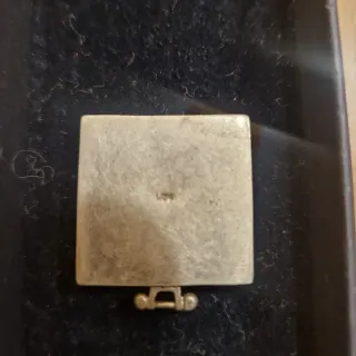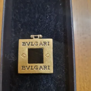 Dije con diseño cuadrado y detalles en oro. - Centro negro. - Grabado de la marca Bvlgari en la parte superior e inferior. - Pequeños detalles en forma de rombo a los lados del centro negro.