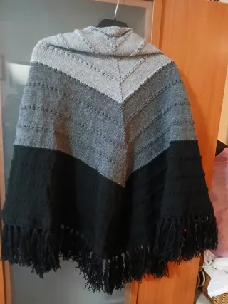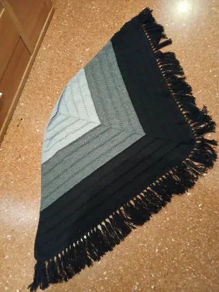 Preciosa toquilla tejida con un diseño chevron. Perfecta para añadir un toque de estilo. Es de lana,muy calentita - Diseño en V con diferentes texturas. - Flecos largos en el bajo.
