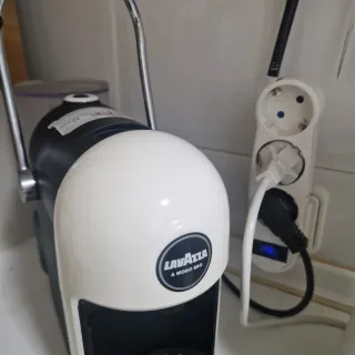 Cafetera Lavazza A Modo Mio en color blanco y negro. Diseñada para preparar café de forma rápida y sencilla. - Marca: Lavazza - Modelo: A Modo Mio - Color: Blanco y negro