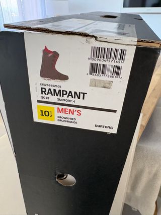 Botas de snowboard Burton Rampant para hombre, talla 10.5. - Modelo: Rampant - Año: 2013 - Talla: 10.5 (US Men's) - Color: Marrón/Rojo (Brown/Red) - Soporte: 4