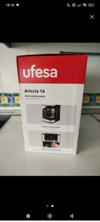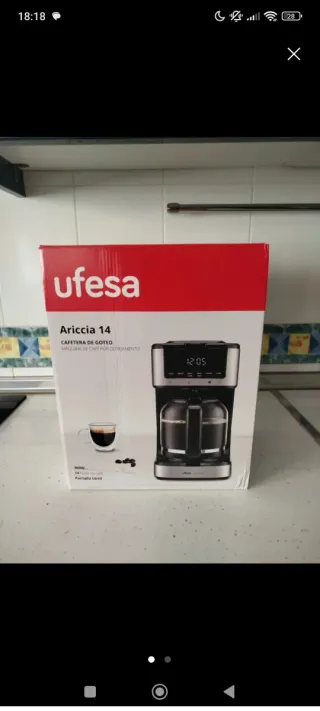 Cafetera A ESTRENAR de goteo Ufesa Ariccia 14, ideal para preparar café de forma sencilla. Es un modelo nuevo a estrenar. - Capacidad para 14 tazas. - Función de pausa y servicio. - Placa calefactora para mantener el café caliente. - Filtro permanente. - Diseño moderno en color negro y plateado.