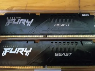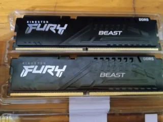 Dos módulos de memoria RAM DDR5 Kingston FURY Beast de 16GB cada uno. Nuevas a estrenar. - Capacidad total: 32GB (2x16GB) - Tipo de memoria: DDR5 - Modelo: FURY Beast - Marca: Kingston