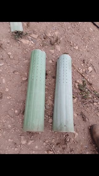 protectores de plástico verde para viñas. Son tubulares y tienen perforaciones. - Color verde. - Material plástico. - Diseño tubular con perforaciones.