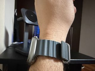 Reloj inteligente Apple Watch Ultra. - Caja de aluminio de color plata. - Correa deportiva de color gris. - Pantalla grande y brillante. - batería al 86% - caja y cargador como nuevo todo